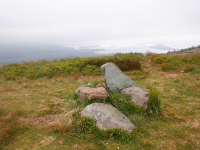 Same route as last week except reversed the outer loop, did Ben Bowie first then Killoeter. Jacket on for a change to cope with the misty drizzle at the start, drizzle didn't last long but not too many views, the islands in Loch Lomond vague grey outlines on a grey surface.